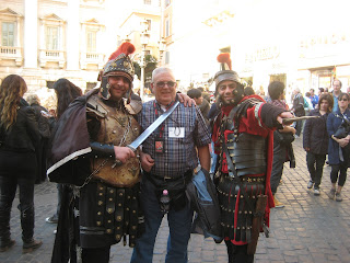 Near La Trevi Fountain, some "Roman Soldiers" caught my husband.