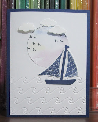 This is one of the wood mounted stamps that I still have. I plan on trying to sell it but before I do, I stamped off several of the design to use for "fun" cards. (Right now the stamp is missing in action so I can't say who makes it.) Quick and easy to stamp and color.